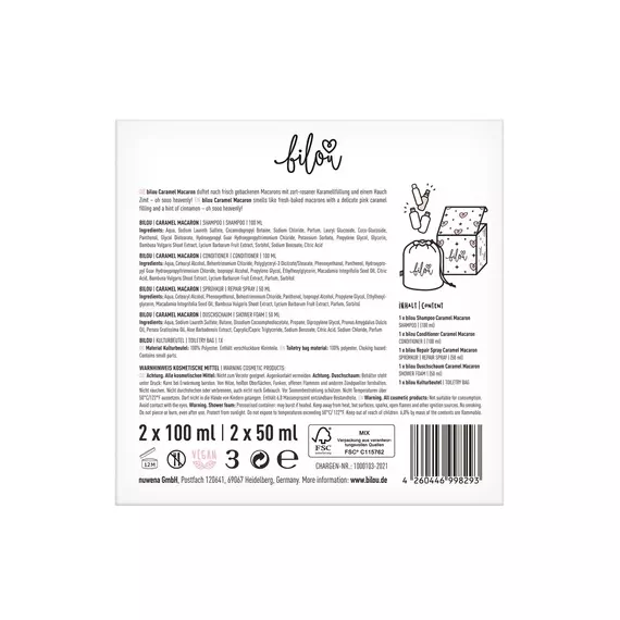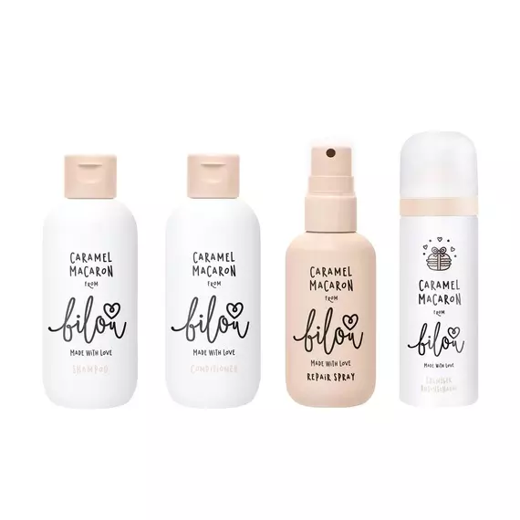 - Шампунь для волосся від бренда Bilou — вірний спосіб потішити себе якісними ритуалами краси, що позитивно впливають не лише на зачіску, а й на емоції. Caramel Macaron Shampoo має аромат ніжної карамелі з корицею. Запашна консистенція створює багату піну контактуючи з водою, ретельно усуває різні забруднення: скупчення поту, пилу, неприємні запахи та залишки стайлінгових засобів.