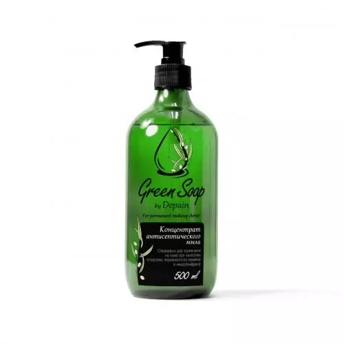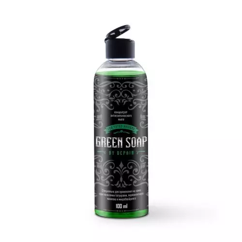 Концентрат антисептичний засіб для дезінфекції зелене мило Green Soap 250 мл – мильний дезінфікуючий концентрат виробництва Depain, який вбиває мікроби та бактерії, забезпечує захист від інфекції, ефективно очищає шкіру від фарби. Має специфічні властивості та ідеально підходить для дезінфекції шкіри при нанесенні татуювань, перманентного макіяжу та мікроблейдингу, також використовують у косметологічних процесах для вмивання та купання до та після процедур лазерної епіляції, місцевий антисептичний засіб для дезінфекції шкіри та інструменту при проведенні косметологічних процедур. татуювань, новоутворень на шкірі, відмінно очищає шкіру людини від вазеліну, всіх типів косметичних барвників, знімає роздратування та набряклість! Ретельно вибирайте засіб дезінфекції, оскільки це гарантія якості вашої роботи та гарантія того, що фарба добре ляже на шкіру і не втратить своєї соковитості та кольору. Обробка шкіри цим "зеленим милом" видалить почервоніння під час роботи та зніме подразнення шкіри.-
