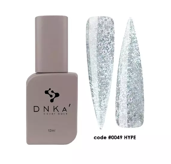 DNK'a / Cover Base #0049 / Hype / прозорий із різнокольоровою поталлю, світловідбиваючий / 12 мл