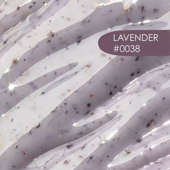 Відтінок 0038 - це ліловий з синіми та фіолетовими сухоцвітами, акригель у баночці без пензлика.