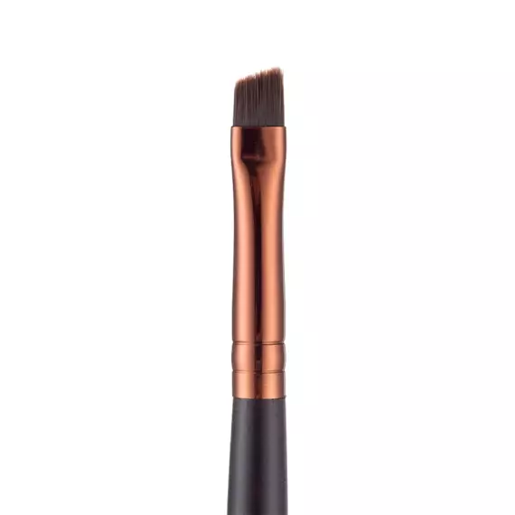 Пензель виконаний з чорного дерева та синтетичного ворсу. Призначений для нанесення фарби для брів і художнього оформлення брів декоративною косметикою. Цим пензлем дуже зручно наносити тіні, розтушовувати олівець. Це незамінний пензель для оформлення брів, особливо для бровистів.