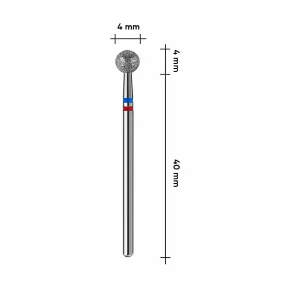 Алмазна фреза куля blue & red з синьою та червоною насічкою Formula Profi Premium (4 мм) призначена для видалення і шліфування кутикули, а також обробки шкіри навколо нігтів. У педикюрі вона застосовується для роботи з загрубілими ділянками шкіри на п'ятах і стопах, мозолями або тріщинами. Інструмент може використовуватися в умовах високого навантаження, стійкий до корозії.