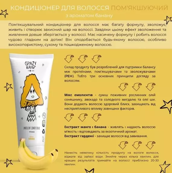 HiSkin / Crazy Hair / Кондиціонер пом'якшувальний для волосся з ароматом банана