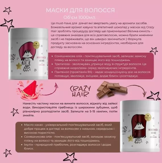 HiSkin / Crazy Hair / Маска для волосся молочно-шоколадна / 1000мл