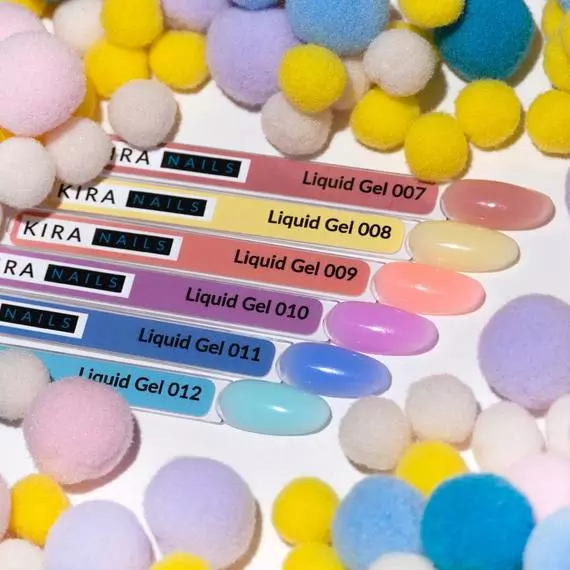 Kira Nails Liquid Gel – це новий якісний матеріал, який зібрав в себе все найкраще від гелю та гель-лаку! Він твердий, але дуже легкий в нанесенні, чудово самовирівнюєтся, дуже добре вкриває нігтьову пластину, добре просихає в лампі і не потребує зайвих зусиль в нанесенні. Чудова носка, без від шарувань та сколів, завдяки характеристикам гелю! 12 кольорів – від прозорого до яскравого помаранчевого, який завгодно клієнт знайде в цій палітрі саме свій колір. Об’єм: 15 мл