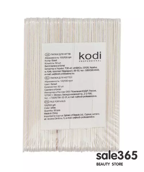 Kodi / Набір пилок для нігтів 100/100 білий (50шт/уп)