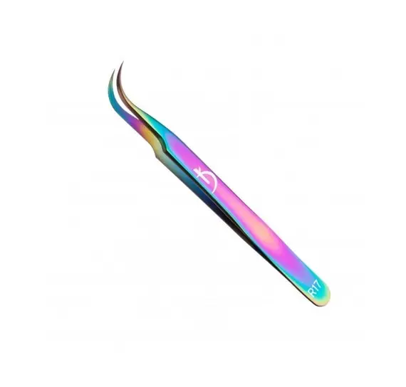 Пінцет для нарощування вій моделі R17 має вигнуті загострені робочі краї для того, щоб швидко і чітко лише одним рухом вибрати з ряду штучну вію, а потім прикріпити її до натуральної. Інструмент виготовлений із якісної медичної сталі з хромованим хамелеон-покриттям для додаткової міцності. Даний матеріал стійкий до корозії та деформації, добре переносить холодну та гарячу стерилізацію.