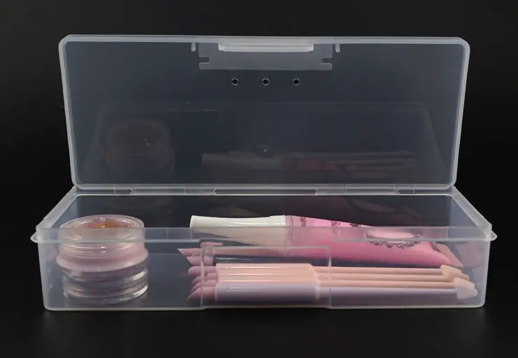 Зручний пластиковий контейнер для зберігання стеків, пензлів та манікюрних інструментів.