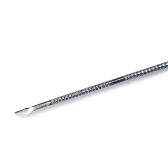 Манікюрний інструмент з двома функціональними частинами: з одного боку лопатка (пушер) для відсунення кутикули, з іншого боку - топірець для чищення нігтів та видалення піднігтьової маси. М'яко відсуває кутикулу, не дряпаючи нігтьову пластину. Дуже зручний шабер, що використовується для будь-яких манікюрних процедур.