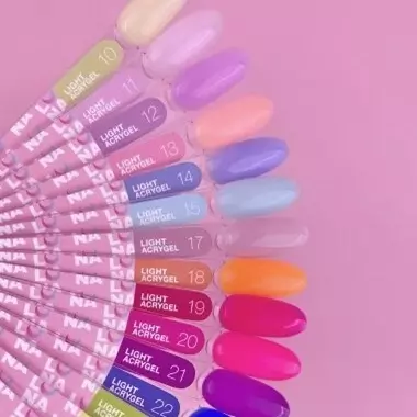 Light Аcrygel - симбіоз полігеля та бази. Він складається більш ніж на половину (60-80%) з акрилового кополімеру, основний компонент полігеля, та невеликої кількості гідроксиетилметакрилату НЕМА (близько 20-30%), основного компонента базових покриттів. Він може повністю замінити бази.