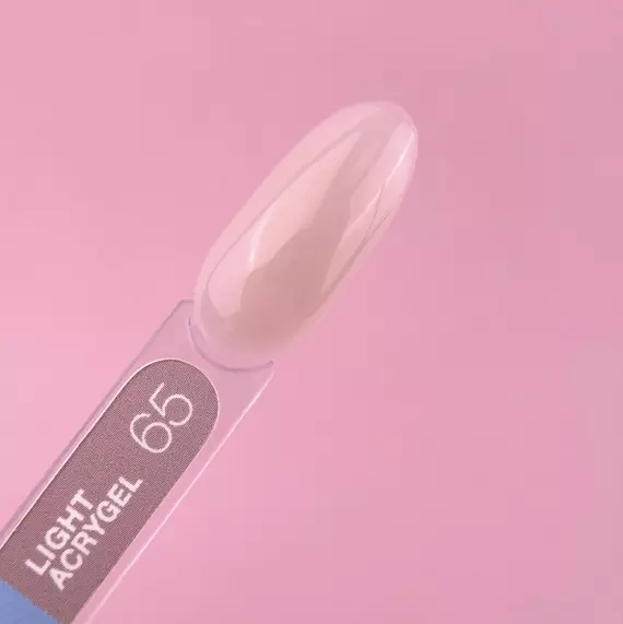Рідкий гель Light Аcrygel — це інноваційний матеріал для укріплення, вирівнювання та донарощування нігтів. Light Аcrygel - симбіоз полігеля та бази. Він складається більш ніж на половину (60-80%) з акрилового кополімеру, основний компонент полігеля та невеликої кількості гідроксиетилметакрилату НЕМА (близько 20-30%), основного компонента базових покриттів. Він може повністю замінити бази.