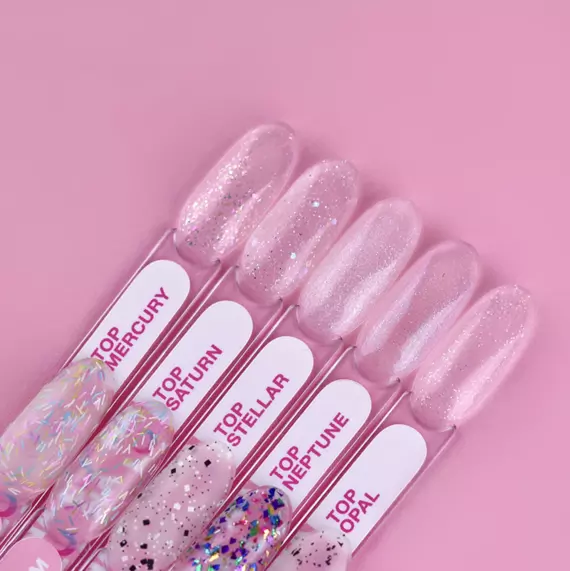 Top Mercury — це топ з декоративними елементами, без липкого шару, який буде гармонійно виглядати з будь-яким кольором на нігтях. Він здатний зробити ваш манікюр цікавим та незвичайним.