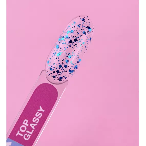 LUNA / Top Glassy / Топ без липкого шару / прозорий з синіми пластівцями / 13 мл