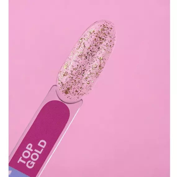 Top Gold — це топ з блискітками, без липкого шару, який буде гармонійно виглядати з будь-яким кольором на нігтях. Він здатний зробити ваш манікюр цікавим та незвичайним.
