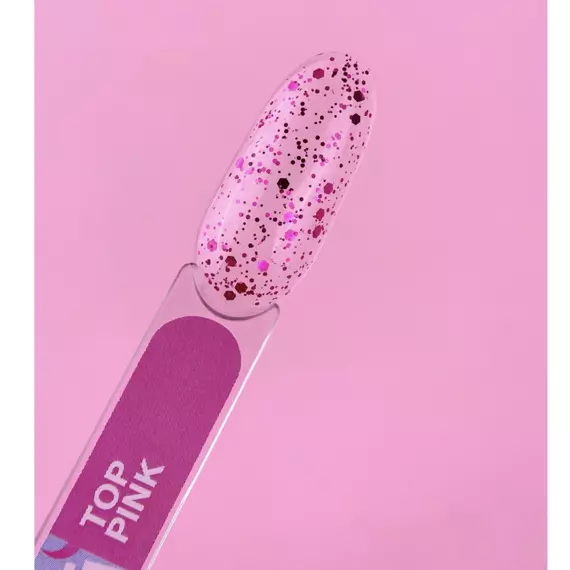 Top Pink — це топ з блискітками, без липкого шару, який буде гармонійно виглядати з будь-яким кольором на нігтях. Він здатний зробити ваш манікюр цікавим та незвичайним.