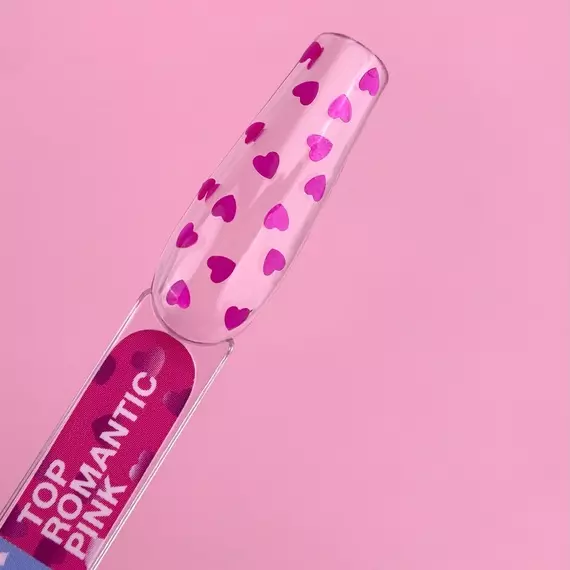 Top Romantic — це топ з сердечками, без липкого шару, який буде гармонійно виглядати з будь-яким кольором на нігтях. Він здатний зробити ваш манікюр цікавим та незвичайним.