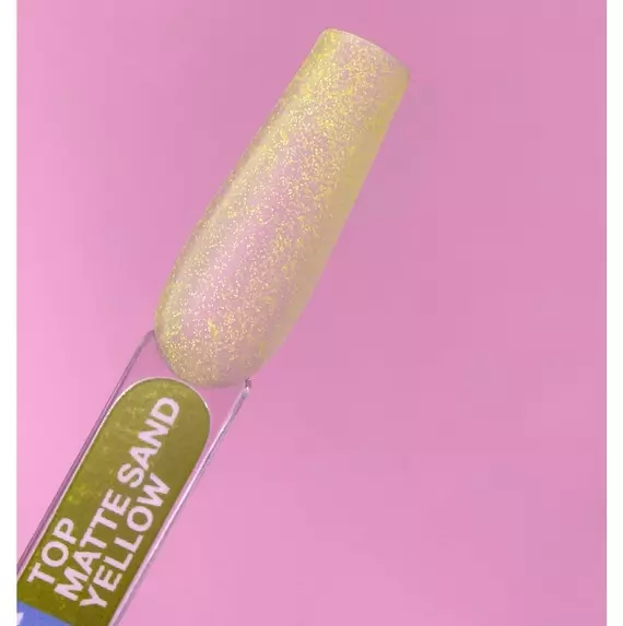 Top Matte Sand Yellow — це топ з декоративними елементами, без липкого шару, який буде гармонійно виглядати з будь-яким кольором на нігтях. Він здатний зробити ваш манікюр цікавим та незвичайним.