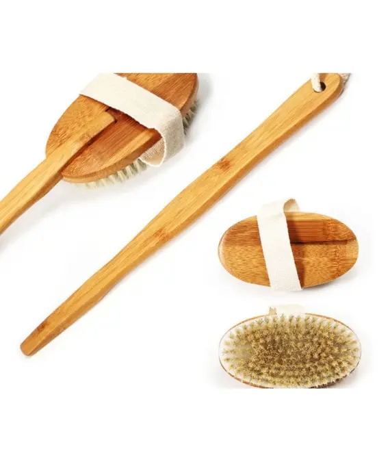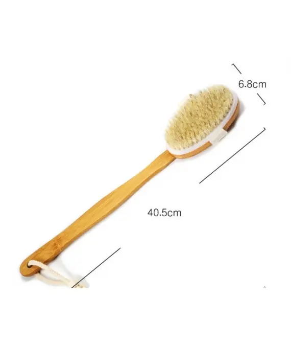 Масажна щітка не травмує шкіру, дбайливо скрабує, тонізує та розігріває. Бамбукова рукоятка (phyllostachys pubescens) – бамбук відрізняється твердістю, міцністю, еластичністю.