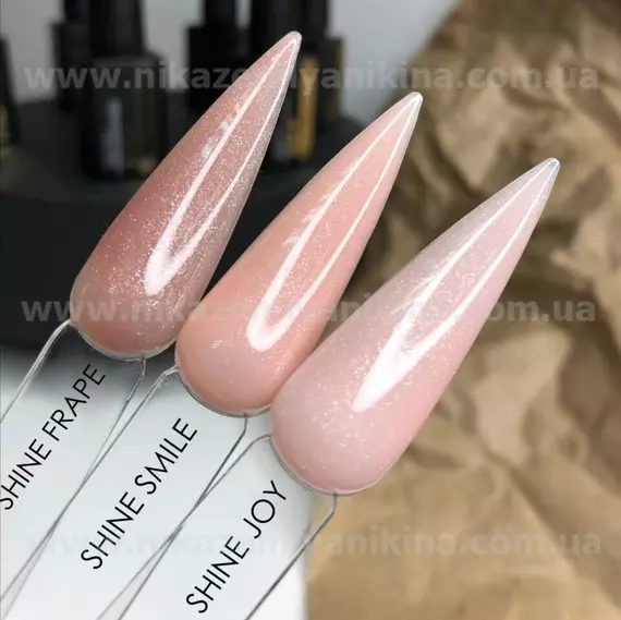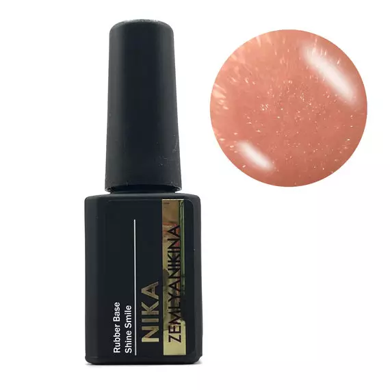 Nika Zemlyanikina / Rubber Base Shine Smile / Бежево-персиковий з сріблястим шимером / 15мл