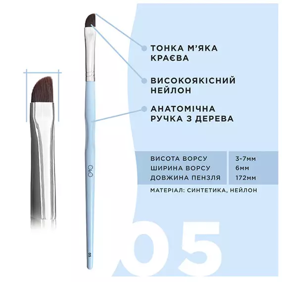 Пензлик OKO №5 виконаний з високоякісних матеріалів, пружний, щільний, зносостійкий. М'яка крайова лінія пензлика дозволяє виконати ідеальне фарбування омбре у поєднанні з чіткою нижньою лінією.