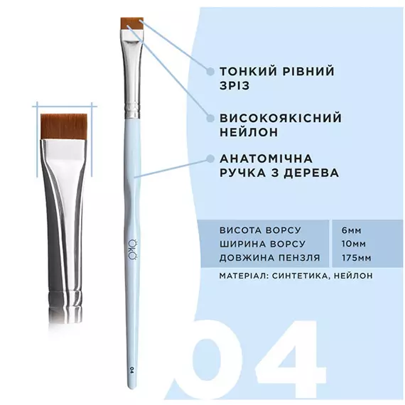 Пензлик OKO №4 виконаний з високоякісних матеріалів, пружний, плоский, щільний, зносостійкий.