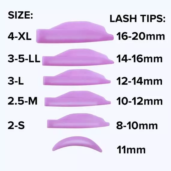 У комплекті 6 розмірів валиків: -S-2.0, -M-2.5, -L-3, -LL-3.5, -XL-4, -Плюс одна пара валиків для завивки нижнього повіка.