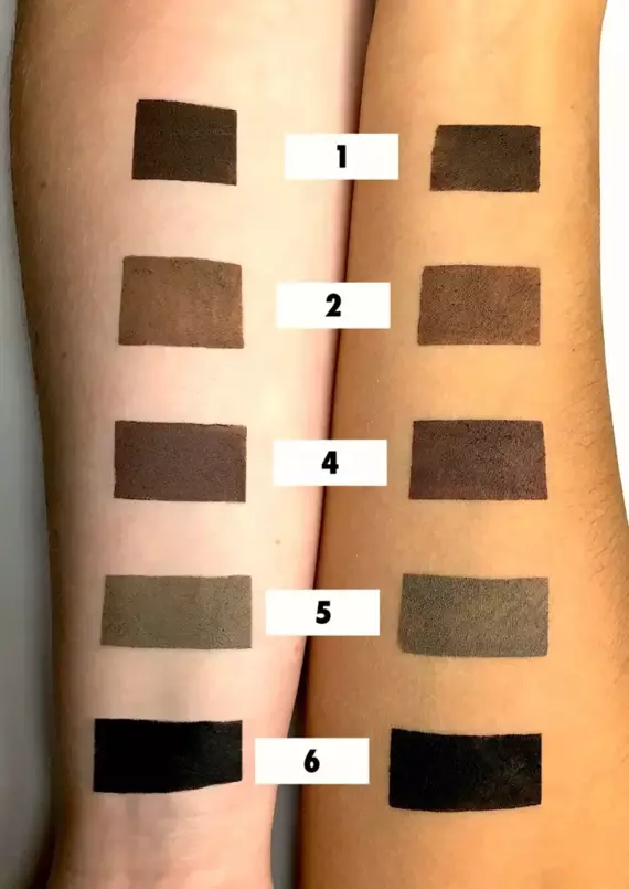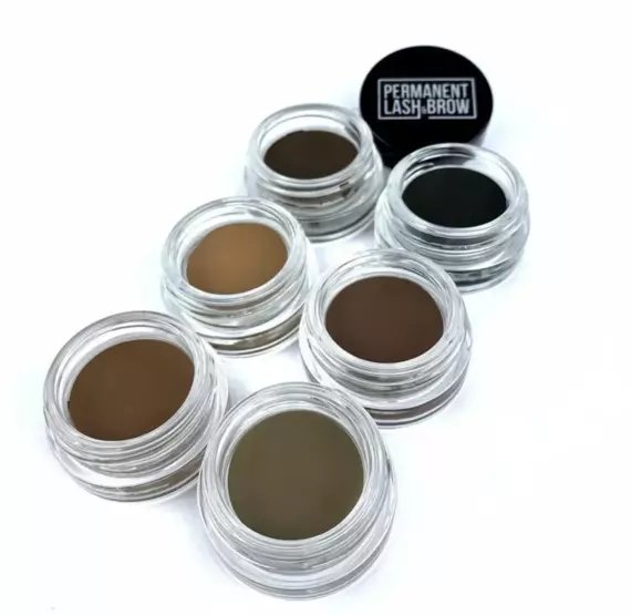 Доступные оттенки: * Каштан №1 * Светло-коричневый №2 * Темно-коричневый №4 * Графит №5 * Черный №6 Она замечательно наносится и равномерно растушевывается благодаря оптимально густой кремовой консистенции, а также обеспечивает стойкий финиш. Способ применения: Расчешите брови, уложите волоски так, чтобы результат вас удовлетворил. Возьмите немного средства на скошенную кисть и тонкой линией распределите внизу брови. Линия должна быть ровной и без лишних выступов. Считайте, что под ней красить нельзя, поэтому убедитесь в симметрии. Возьмите ещё немного помады и точными движениями вдоль роста волосков нанесите её на нижнюю линию и растушуйте. Повторите процесс для верхней линии. В конце заполните пустые пространства, чтобы не было прорех. Источник: https://divalen-market.com.ua/p/882201915-pomadka-dlya-brovey-permanent-lash-brow/-