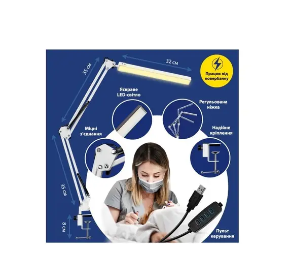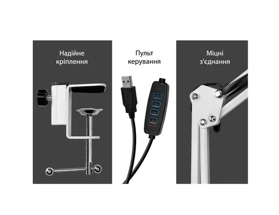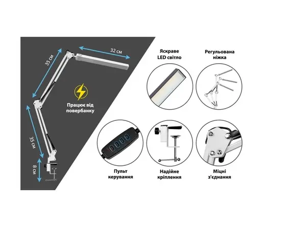 LED USB світильник із кріпленням – тонка настільна лампа, яка займає мінімум місця. Вона кріпиться до стільниці, немає підставки, тому займає корисне місце у робочій зоні.
