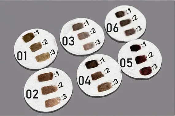 01 Blonde – Найсвітліший коричневий колір, ідеально підходить для блондинок. Не затемнює волоски навіть після ламінування і залишає мінімум сліду на шкірі. Додаючи краплю 03 Graphite, можна зробити відтінок ще холоднішим.