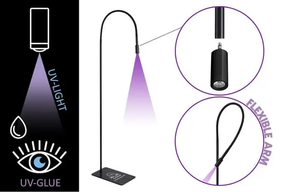 - Направте лінзу УФ-лампи з відстані близько 15 см на око, до якого приклеюєте вії.