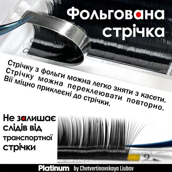 Вії PLATINUM by Chetvertinovskaya Liubov - це результат багаторічного досвіду розробок у сфері виробництва матеріалів для нарощування вій. При їх виробництві враховано всі побажання майстрів з нарощування вій. Наша продукція відповідає світовим стандартам якості.