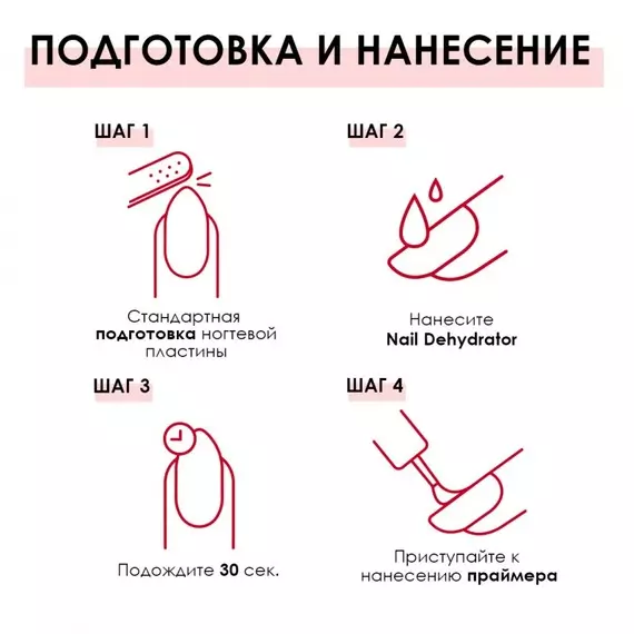 Nail Dehydrator отличается безопасной формулой, не содержит токсичных компонентов, балансирует уровень pH. Ложится на ноготки равномерным слоем, моментально впитывается и не требует времени для высыхания.