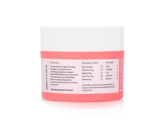Формула з веганським колагеном допомагає підвищити еластичність шкіри разом з експертною сумішшю олії ши та сквалана. Це інтенсивний, дуже поживний засіб створення для зволоження, заспокоєння та омолодження шкіри.