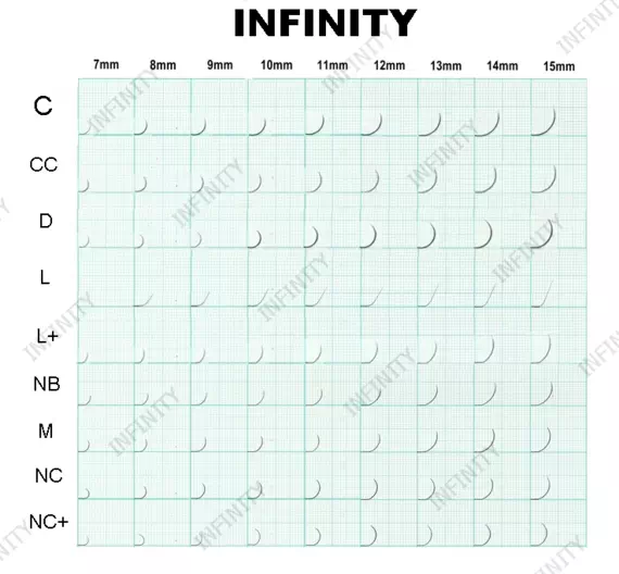 Вії INFINITY – це новий рівень у виробництві високоякісної продукції для професійного нарощування вій. Вії м'які і еластичні, насичено темно коричневого кольору, бездоганної якості, дуже зручні в роботі. Вії не ламаються і не деформуються, тримають вигин навіть при самих екстремальних умовах підвищеної вологості та високої температури.