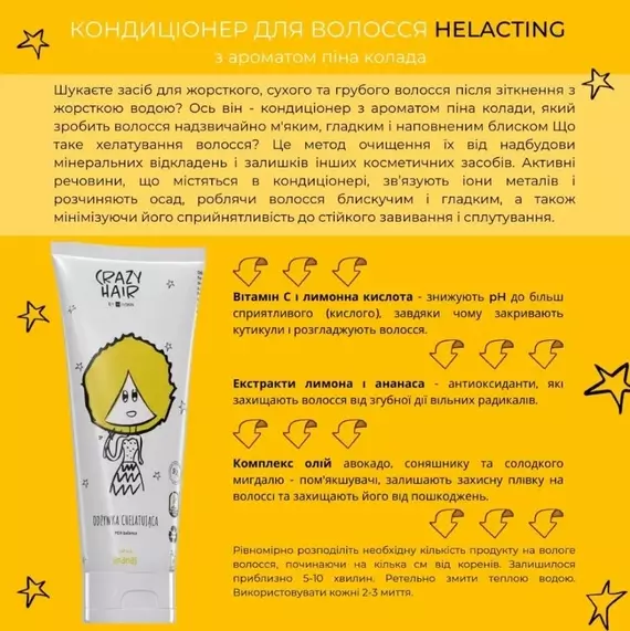 HiSkin / Crazy Hair / Кондиционер для волос Helacting (удаляет минеральный осадок) пена колада / 250мл