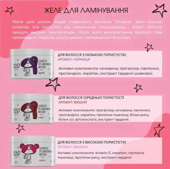 HiSkin / Crazy Hair / Желе для ламинирования волос со средним пористым уровнем вишня / 300мл