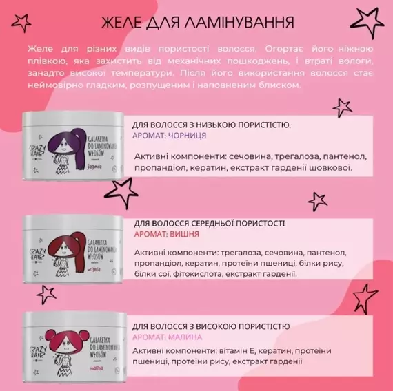 HiSkin / Crazy Hair / Желе для ламинирования волос с высоким уровнем пористости малина / 300 мл