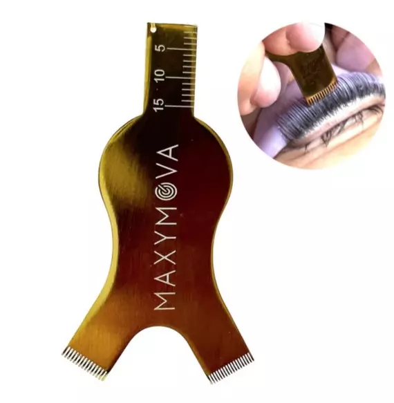 Maxymova / Аппликатор для ламинирования ресниц многоразовый / золотой с линейкой