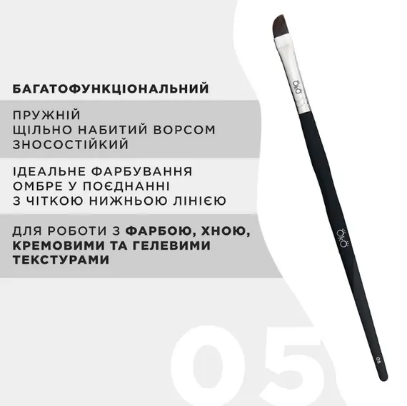 Кисточка OKO №5 выполнена из высококачественных материалов, упругая, плотная, износостойкая. Мягкая краевая линия кисточки позволяет выполнить идеальную окраску омбре в сочетании с четкой нижней линией.