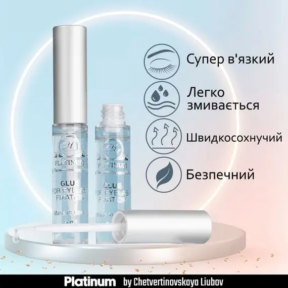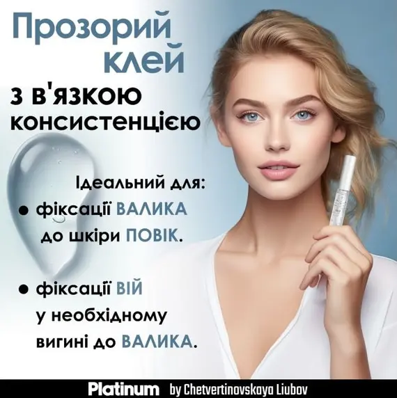 Клей прозрачный, вязкой консистенции. Идеально подходит для фиксации валиков с кожей век и ресниц в необходимом положении на валиках. Легко смывается водой.