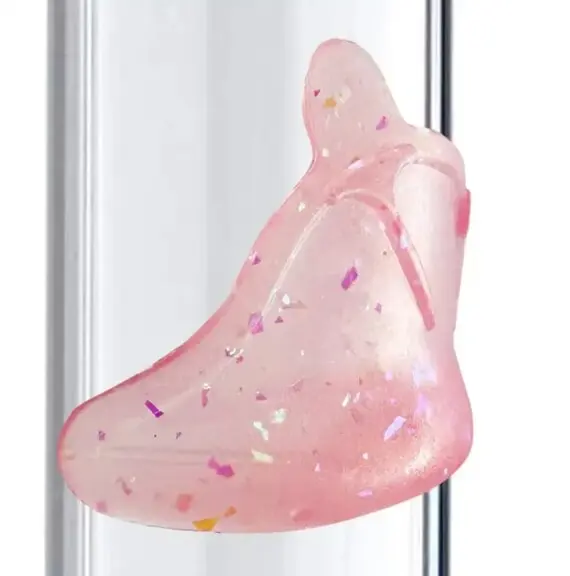 - Прозрачный розовый цвет с блестками делает инструмент стильным и хорошо заметным.