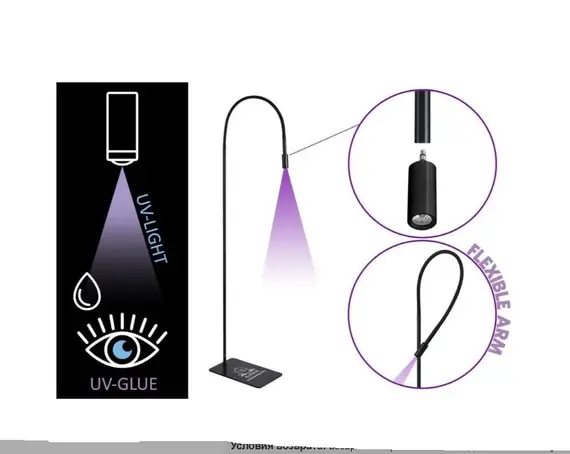 - УФ-клей, который начинает твердеть только после воздействия УФ-лампы, позволяет вам работать без спешки и точно контролировать процесс.