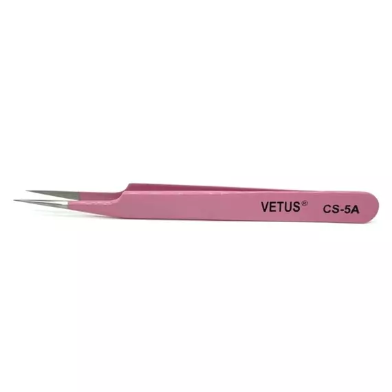 Пинцеты Vetus, знаменитого Швейцарского производителя инструментов "Vetus", отличаются повышенным качеством исполнения, изготовлены из нержавеющей немагнитной антикислотной стали, имеют легкий вес, легко и удобно лежат в руке. Упругость и легкость хода створок достаточна для удобной работы длительное время (жестким пинцетом будет достаточно тяжело работать, за счет того, что необходимо больше прилагать усилия для нажатия). Налицо большое количество различных моделей пинцетов "Vetus". Пинцет - со стандартным телом, идеален для объемного наращивания, позволяет максимально и быстро выполнить работу, при этом рука испытывает минимальные нагрузки. Площадь поверхности смыкания – достаточна для качественного выполнения процедуры.