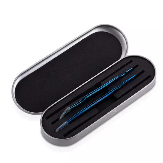 Vivienne / Набор двух пинцетов / Синий металлик / L+прямой с изгибом