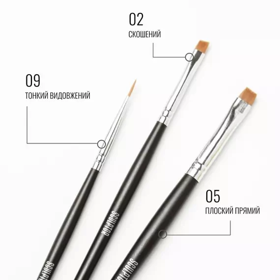 Цей набір дозволяє точно і акуратно промальовувати контури брови, створювати чіткі і рівні лінії, а також ефективно працювати з декоративною косметикою, різними текстурами фарби (кремової або гелевої) і хною. Пензлики виготовлені з високоякісних матеріалів, що забезпечують довговічність та комфорт у використанні.