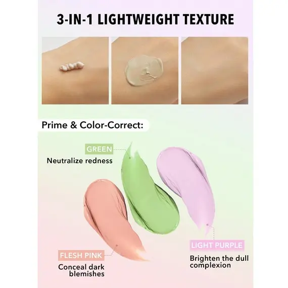 З нашим новим праймером для корекції кольору ідеальна шкіра – це просто! Цей триколірний спіральний праймер для корекції кольору, освітлення та маскування недоліків перед нанесенням макіяжу. Праймер, створений на основі рослинних інгредієнтів природного походження.