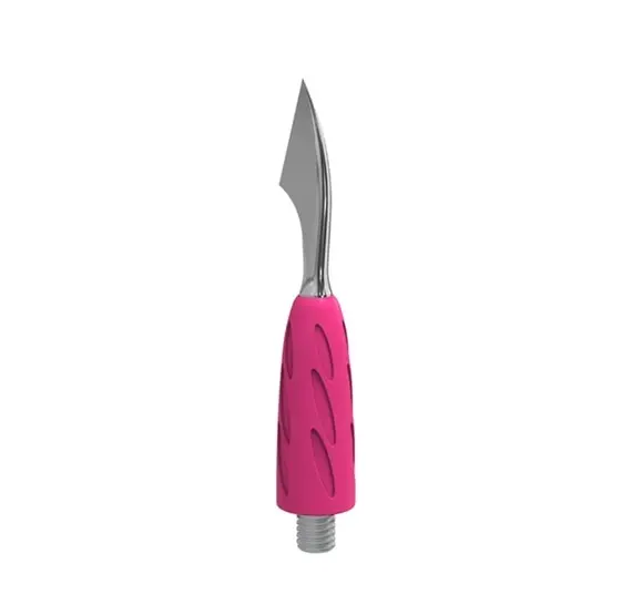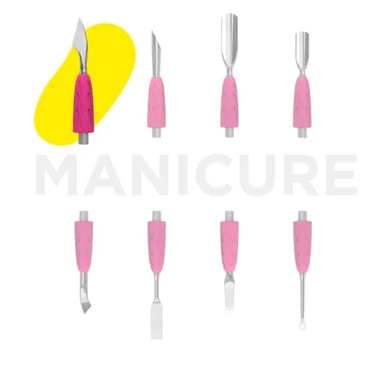 - Робоча частина “топорик” призначений для ретельного очищення нігтьової пластини від птеригія, обробки бічних валиків та вільного краю при виконанні манікюру та педикюру.