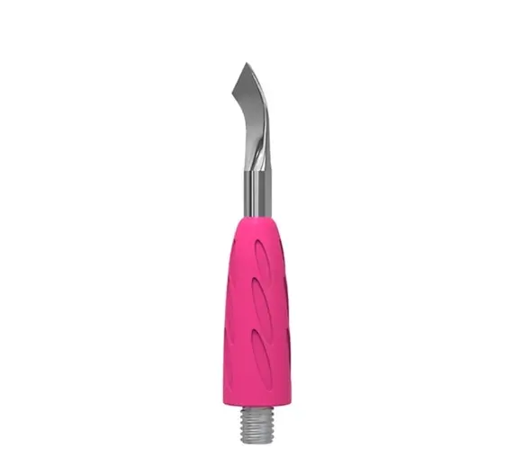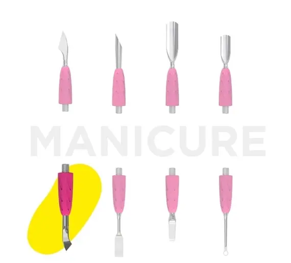 - Робоча частина “лопасть відігнута” має зручний нахил, призначена для обробки синусів, підняття грубої кутикули, що сильно залипла, при виконанні манікюру і педикюру.