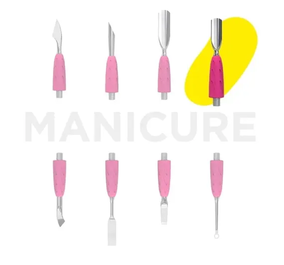 - Робоча частина “пушер округлий вузький” призначений для підняття та відсування кутикули для подальшого її видалення при виконанні манікюру та педикюру.