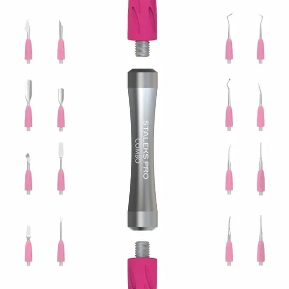 Staleks Pro робоча частина лопатки Combo UNIQ 38 пилка пряма — інноваційний змінний модуль для вкручування в ручку, що допомагає створити ідеальний інструмент. Майстер може вибирати та комбінувати робочі частини модульного пушера, збираючи інструмент, що враховує потреби конкретної процедури.